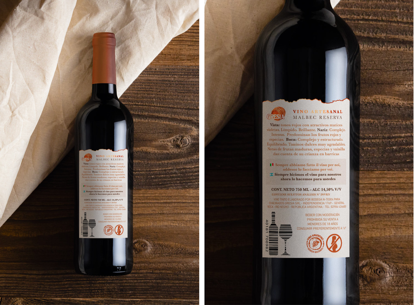 Gresia es una empresa de General Roca que comenzó en enero de 1980 con el sueño de Juan y Graciela del mercadito propio, creando además una variedad de productos de calidad y delicias de producción propia en su propia Fábrica de Chacinados. Pero además produce su propio vino malbec.